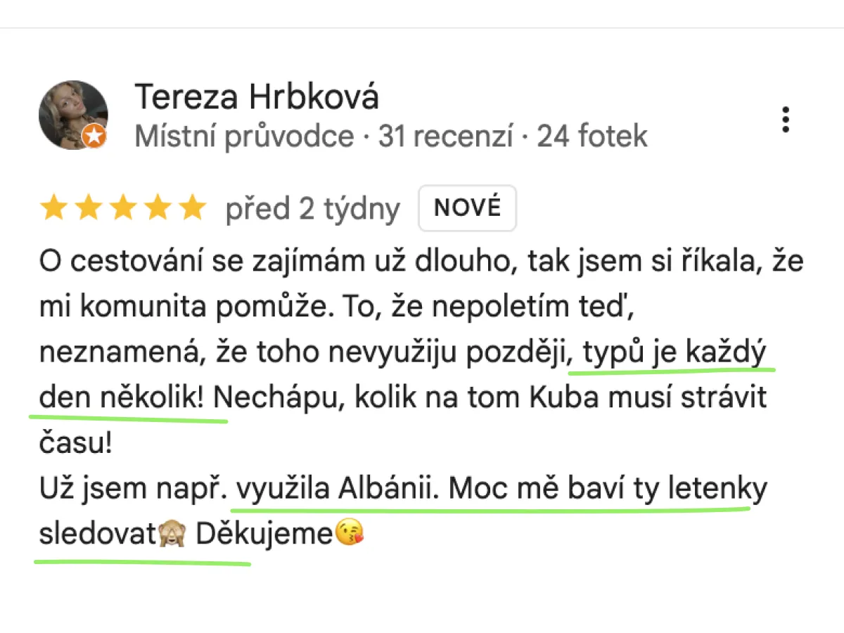 Každý tip na letenky ode mě ti v průměru ušetří 3 000 Kč/osobu. 🚀 Takových tipů budeš získávat přes 100 měsíčně.